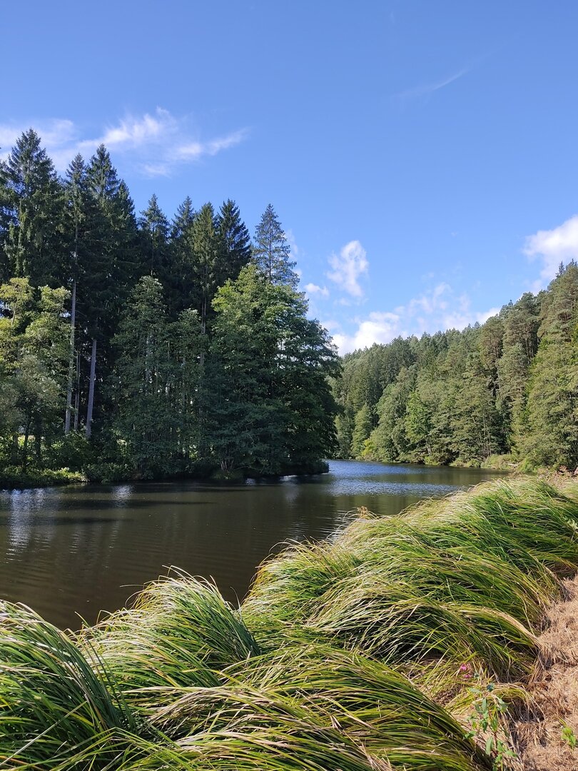 Schwarzen Regen. Still und träge zog sich das Band des Blaibacher Sees