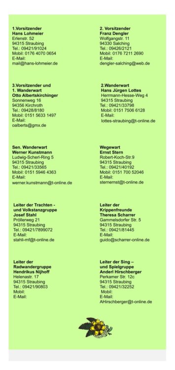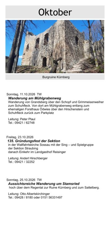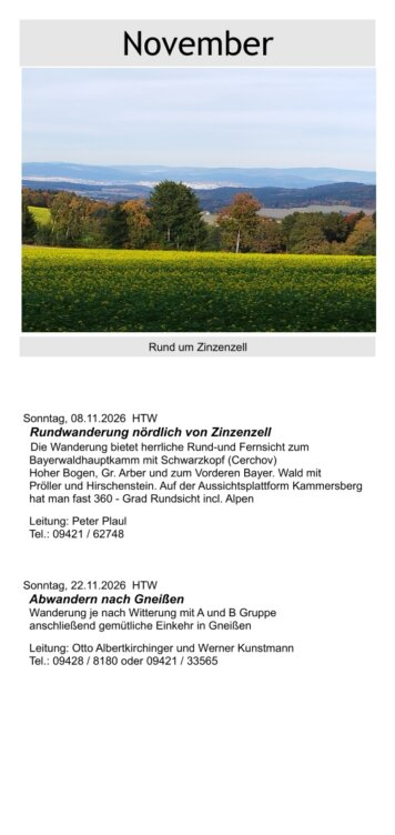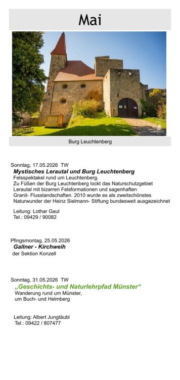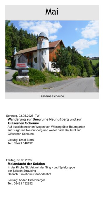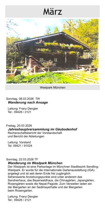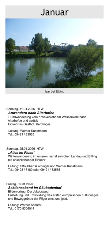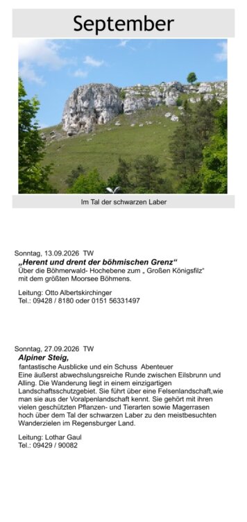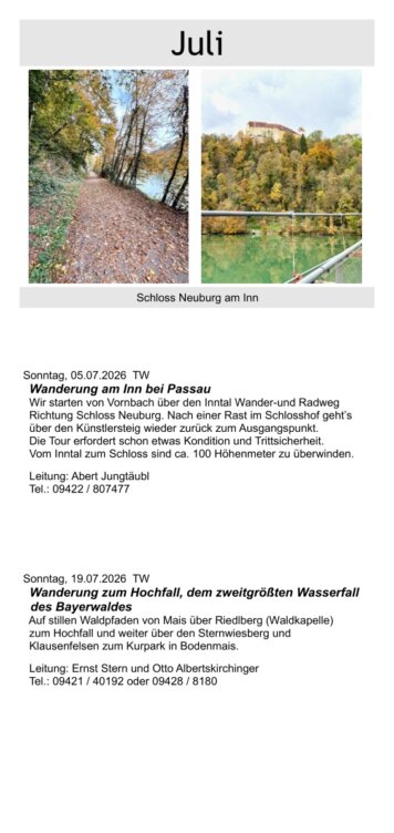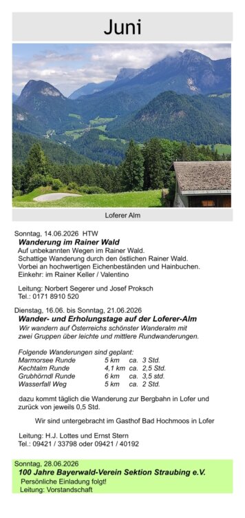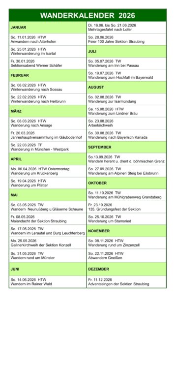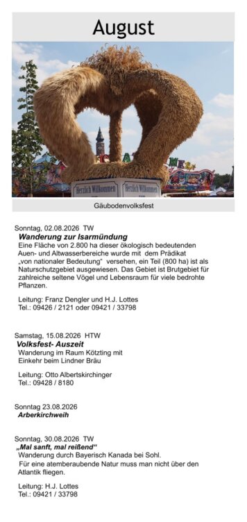 Alle Veranstaltungen und Wanderungen werden am Dienstag im Veranstaltungskalender des Straubinger Tagblatts angekündigt.