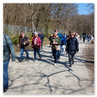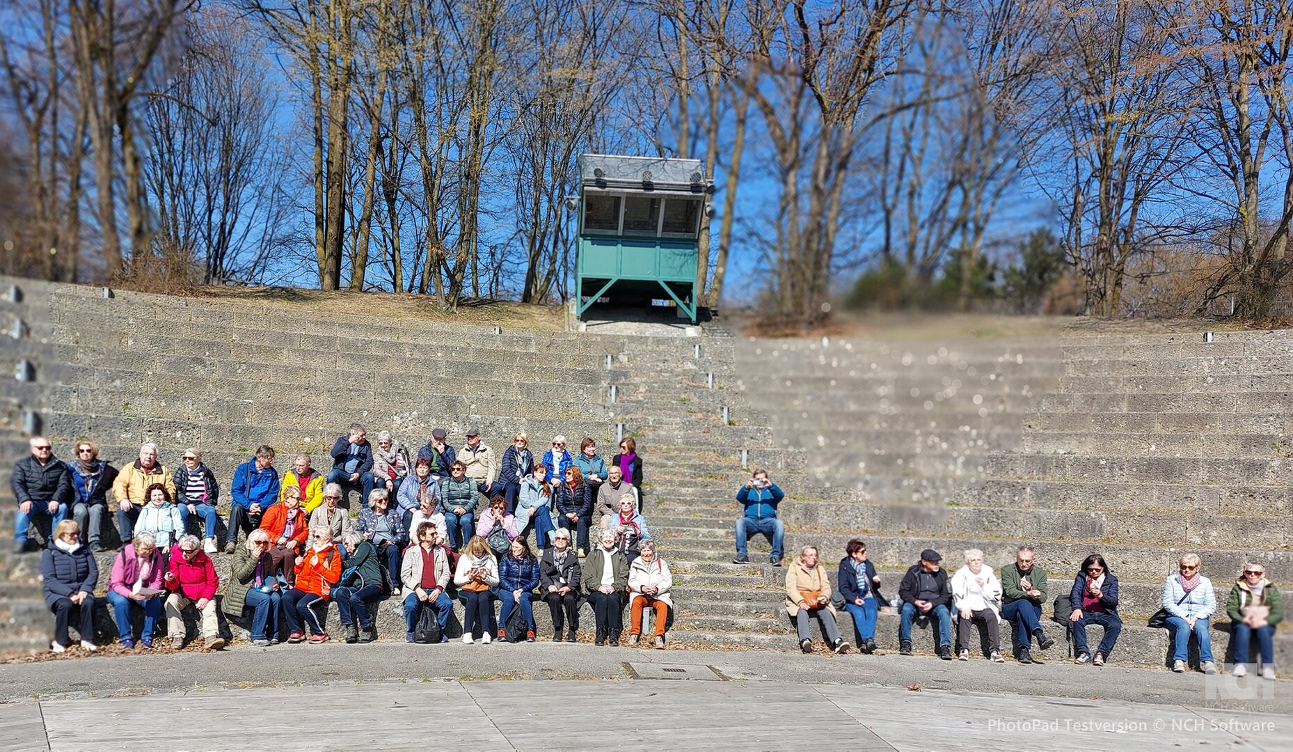 Ein besonderer Moment der Ruhe bot sich an der Seebühne. Auf deren Stufen nutzten die Teilnehmer das herrliche Wetter für eine ausgedehnte Pause und ließen sich ihr mitgebrachtes zweites Frühstück schmecken. Im Rosengarten konnten die Gäste bereits erahnen, welche Farbenpracht sie in den Sommermonaten erwarten wird.