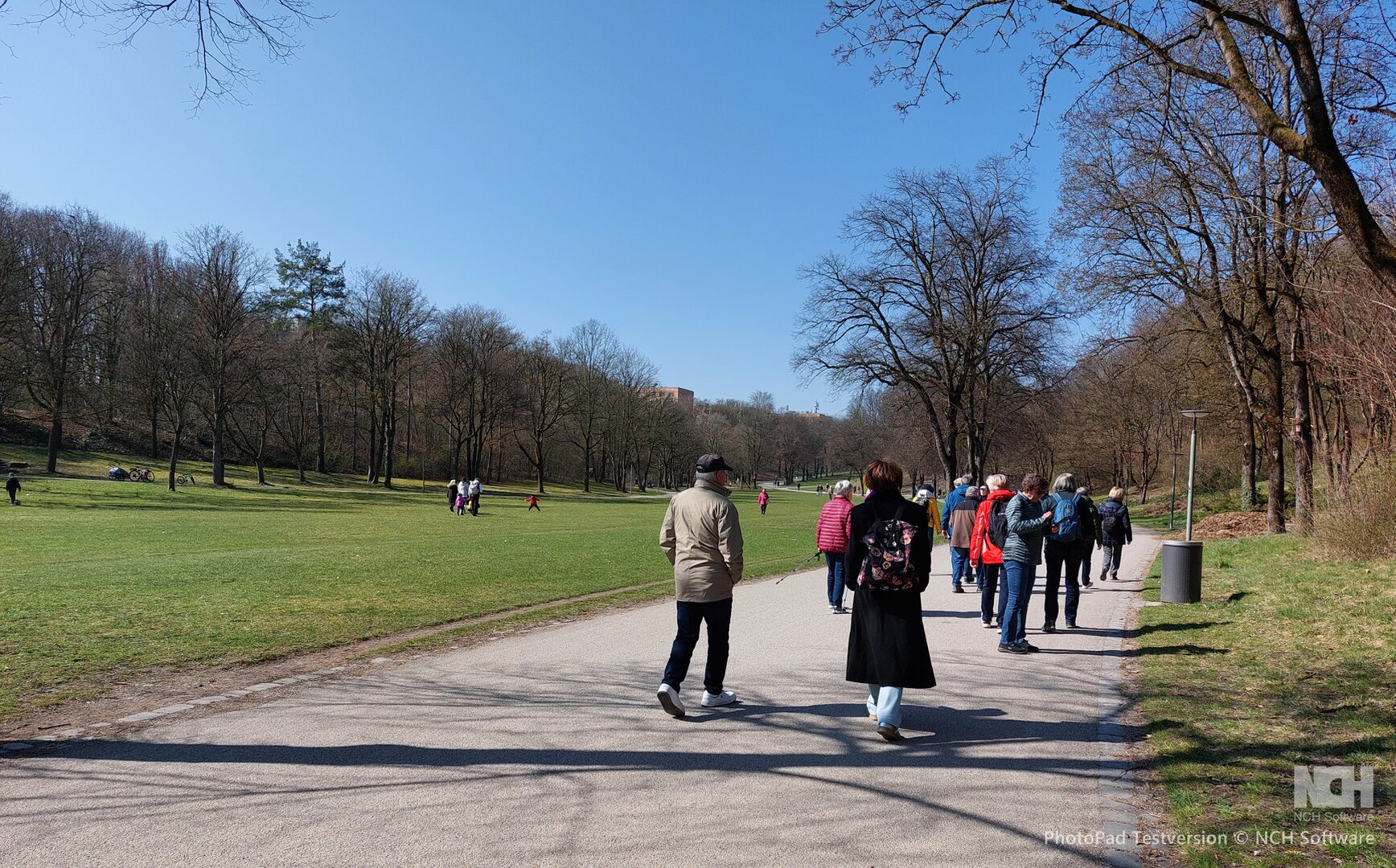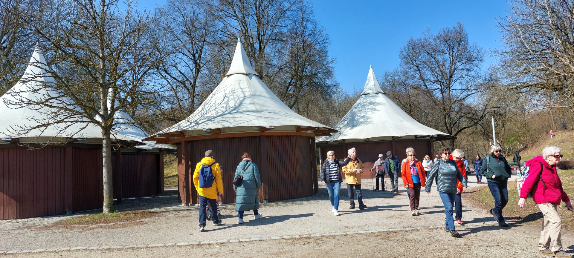 Ausgangspunkt der Wanderung war der BMW Park, vielen noch bekannt als ehemalige Rudi-Sedlmayer-Halle. Von dort aus führte die Route vorbei am idyllischen Griechischen Garten und den imposanten Alten Eichen. Nach der Überquerung der vielbefahrenen Garmischer Autobahn eröffnete sich der Gruppe bereits das nächste Highlight: das Bayerwaldhaus, das einst Teil des Museumsdorfes in Tittling war und im Zuge der Parkgestaltung nach München umgesetzt wurde.