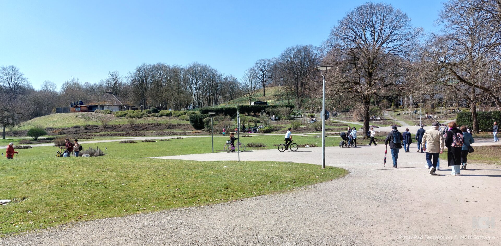 Der Rückweg führte entlang der südlichen Parkbereiche, vorbei an schattigen Pflanzungen, lebhaft besuchten Spielplätzen und liebevoll angelegten Familiengärten. Am See-Café angekommen, zog es viele zum Modellboot-Hafen, wo ferngesteuerte Boote für zusätzliche Unterhaltung sorgten.