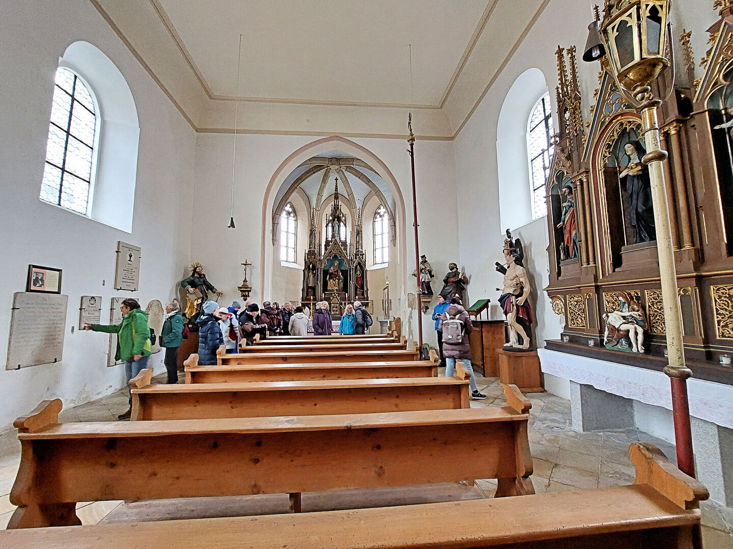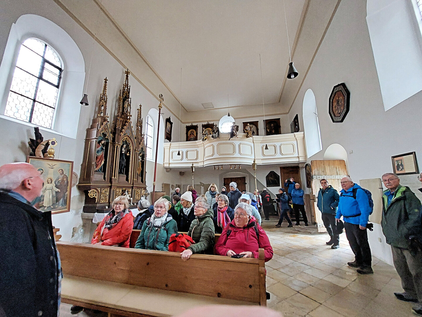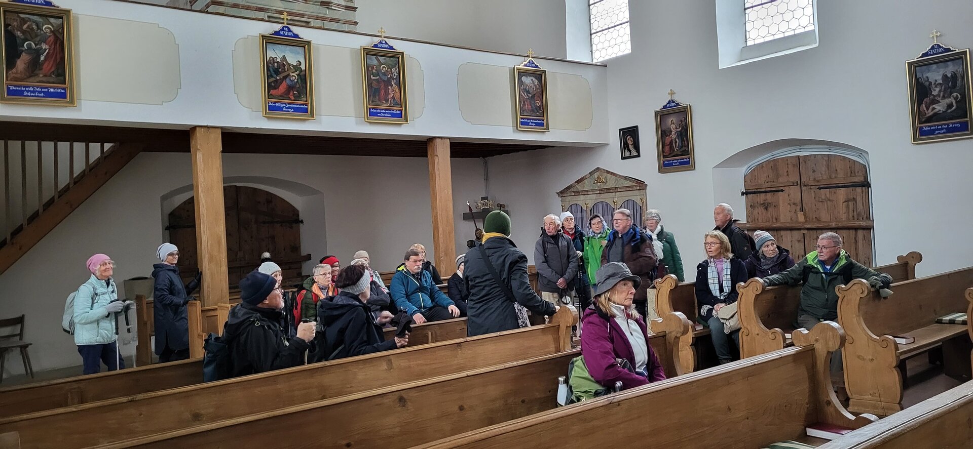Zur Winterwanderung am Sonntag, den 19. 01. bei Wörth/D., konnten die beiden Wanderführer Otto Albertskirchinger und Werner Kunstmann über 60 Teilnehmer begrüßen. Bei strahlendem Sonnenschein war das erste Ziel dieser Wanderung das Bergkircherl St. Wolfgang u. St. Ulrich, das über dem Ort Tiefenthal thront. Beeindruckend ist hier nicht nur die Aussicht über das Donautal, auch die kleine Kirche hat einiges zu bieten. Es handelt sich um eine doppel- geschossige ehemalige Burgkapelle aus dem 11./12. Jahrhundert. Von der zur selben Zeit erbauten Höhenburg finden sich heute keine Bauspuren mehr. Sie wird seit 1401 nur noch als Burgstall erwähnt. Nach einer kurzen Kirchenbesichtigung führte der Weg hinaus an die Donau und weiter zum Naturschutzgebiet „Gmünder Au“ und dessen ausgedehntem Altwasserarm. Was einst der Hauptstrom der Donau war, ist heute eine Oase der Ruhe und Rückzugsort für viele Zug- und Brutvögel. Mit vielen schönen Eindrücken im Gepäck brachte der Bus die Wanderer anschließend nach Kirchroth zur verdienten Einkehr im Gasthof zur Post.