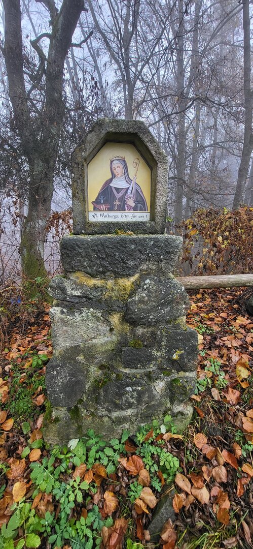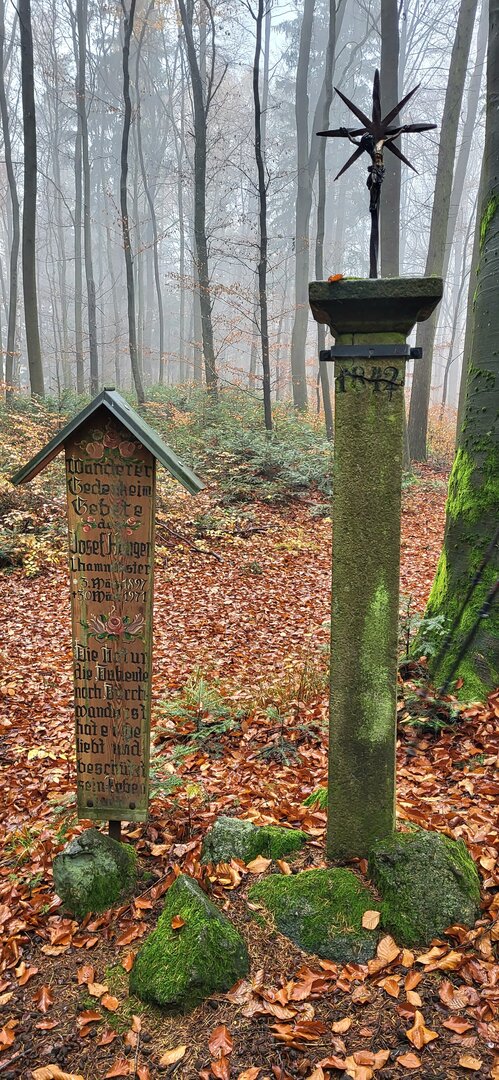 Danach besuchten wir die beeindruckende Gedenkstätte des BWV, Sektion Blossersberg, eine Grotte im Naturstein mit den Namen ihrer verstorbenen Mitglieder. Kurz danach erreichten wir den höchsten Punkt unserer Tour, mit ca. 780 hm.