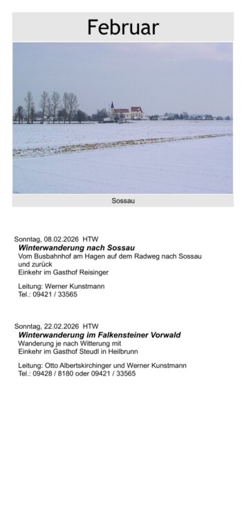 Alle Veranstaltungen und Wanderungen werden am Dienstag im Veranstaltungskalender des Straubinger Tagblatts angekündigt.